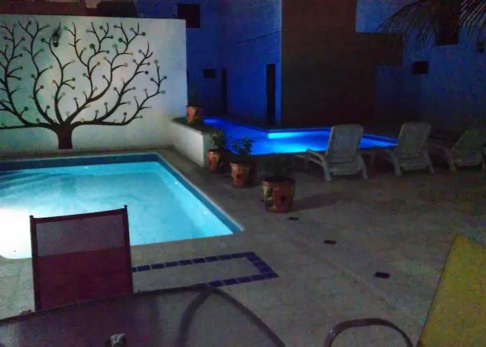 Von den Zimmern aus können Sie den Blick auf den Pool genießen. Es gibt auch ein privates Badezimmer.
